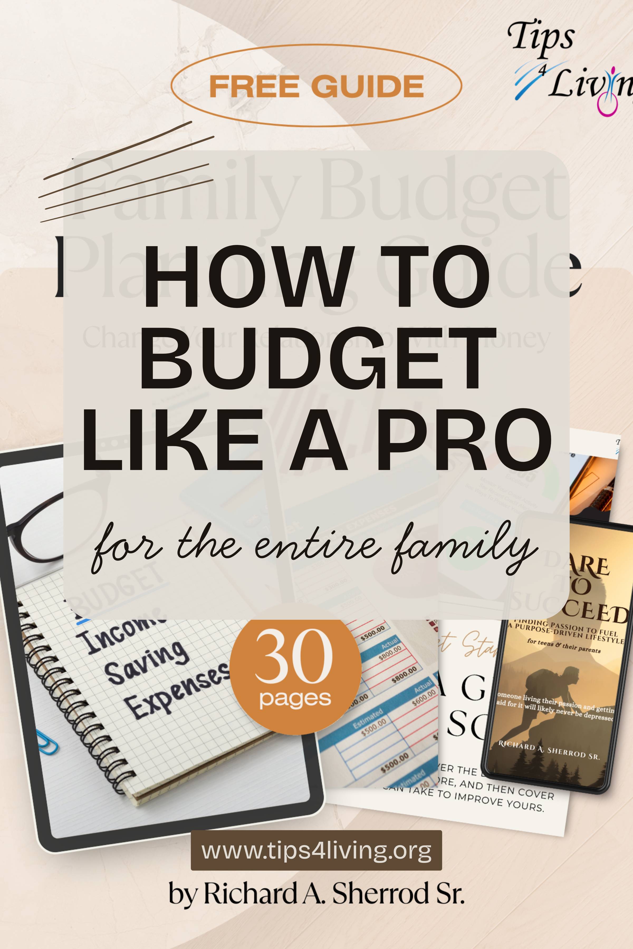 Stop living paycheck to paycheck. Learn how to involve the entire family in budget planning, so the kids participate in the process and learn. We will add new Pinterest Pins to offer other free eBooks, so check our profile often at Tips4Living.